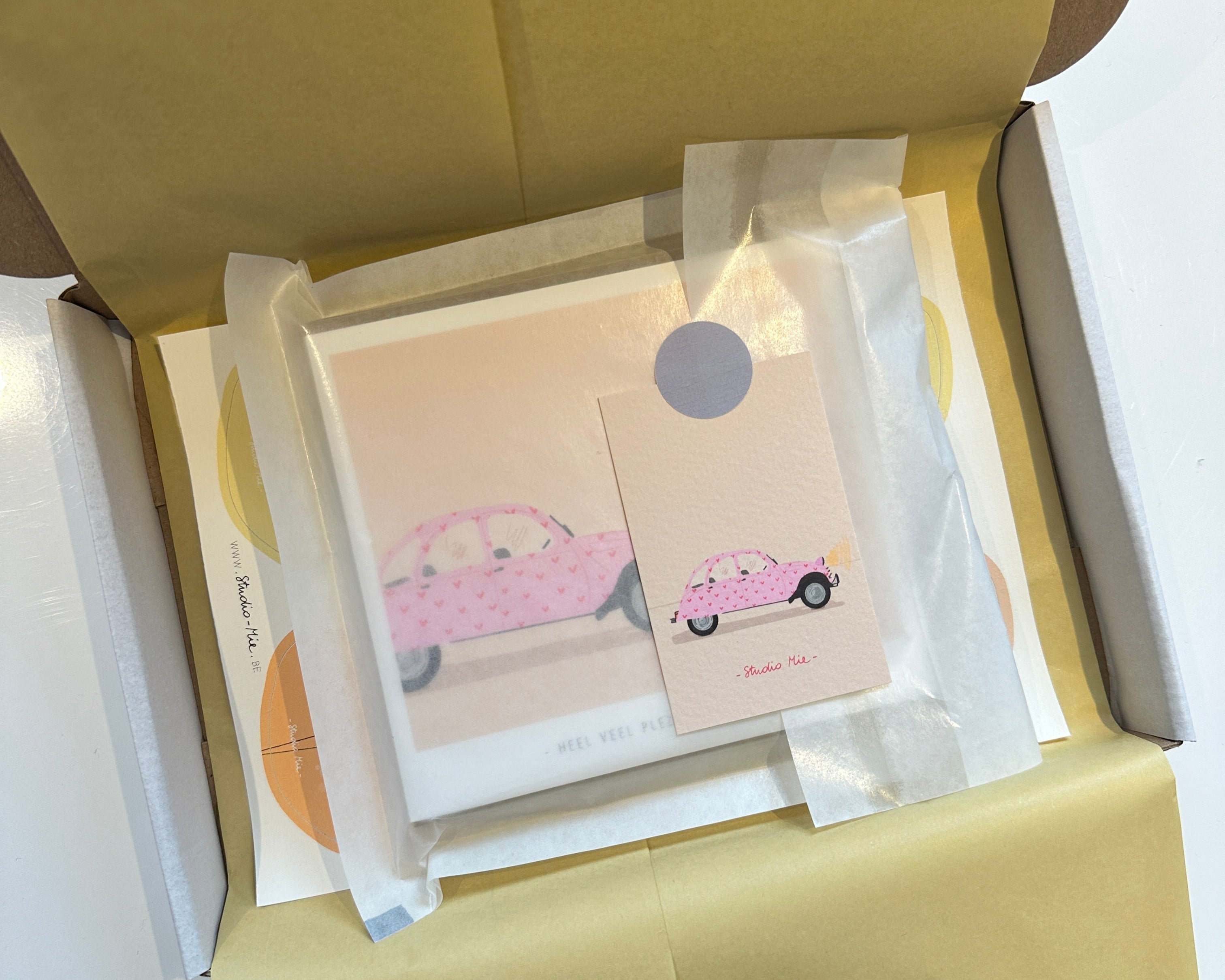 Ik bekijk elke box opnieuw wat ik erbij steek. Dit kan een Studio Mie pen zijn, leuke sluitstickers voor op je enveloppen, een bewaardoosje voor je kaartjes, hangtags voor aan een cadeautje,...